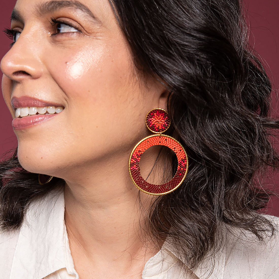 Sweet and radiant, these earrings mix pink tones with gold plated hoops for a feminine finish. Ideal for brunch dates, casual elegance, or soft romantic looks.