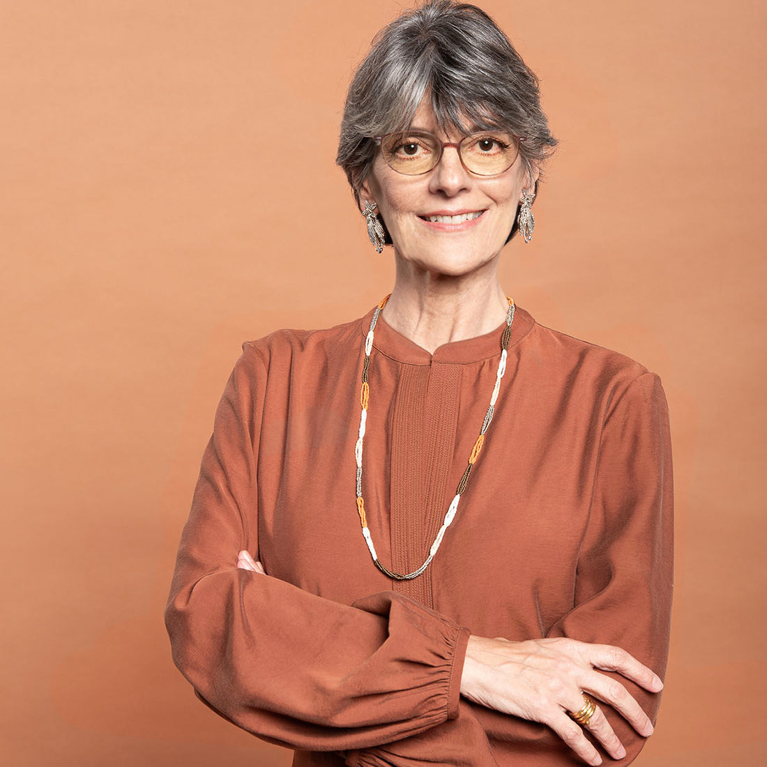 Golden Miyuki Beads and shimmering brass chains come together in this radiant pair of heart earrings — perfect for festive nights or a refined everyday look.
